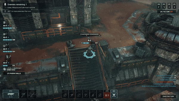 Las coberturas y overwatch funcionan como uno espera, con elementos únicos como las granadas para cerrar spawn points, las ejecuciones con motosierra o el patear a los Tickers para eliminarlos sin que exploten.