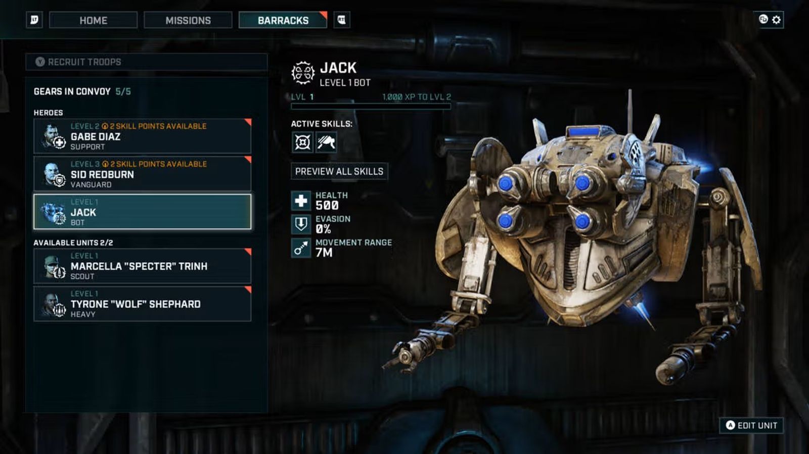 Mención especial a Jack, el robot volador que no ocupa slot entre tus soldados y es un requerimiento para las dificultades altas (se puede desactivar completamente ya que fue añadido en un parche de actualización).